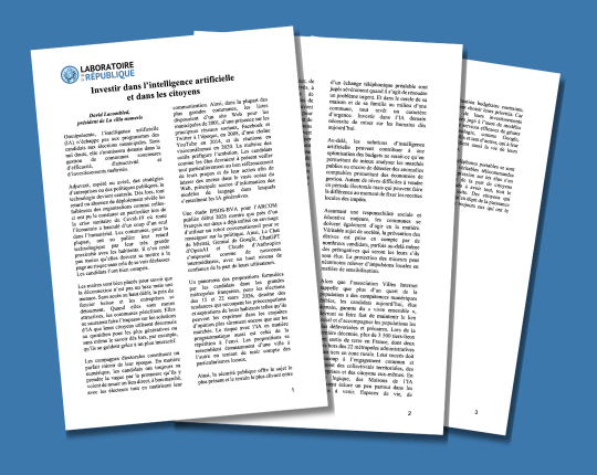 Dans une note d’expert publiée par le Laboratoire de la République, David Lacombled, président de La villa numeris, montre que l’intelligence artificielle est désormais au cœur des stratégies d’attractivité et de modernisation des communes